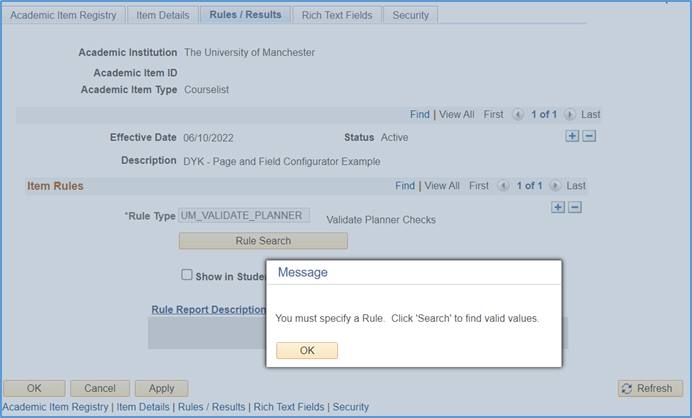 Rule Type is defaulted and disabled as this must be captured in this specific value for all items |