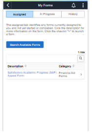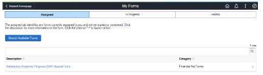 - Assign specific forms or surveys to users. For example, we can assign an SAP Appeal form to all students who do not meet SAP for a particular term.