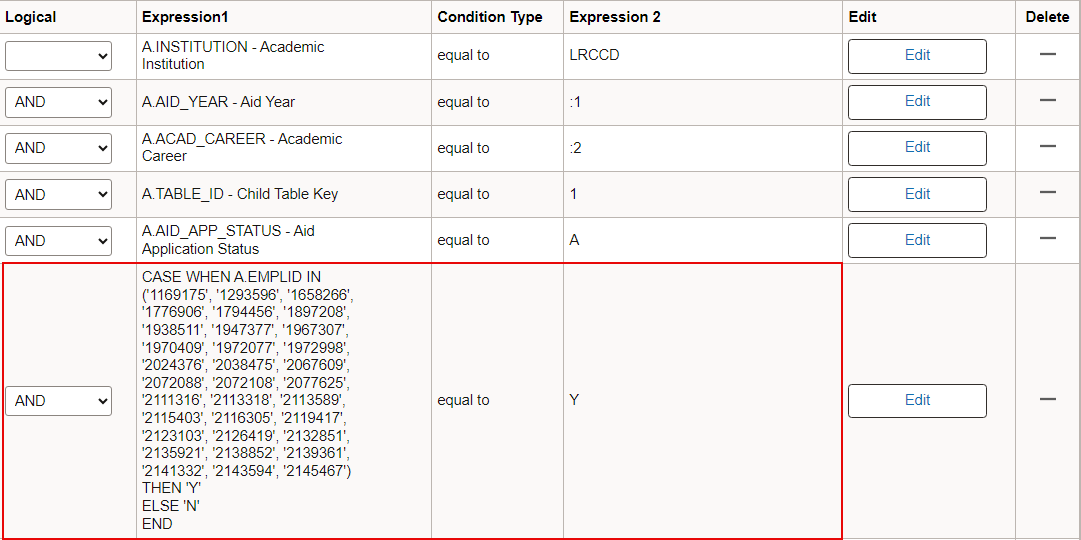 Sharing a way in Query Manager to use expressions in the where clause that allows you to paste lists of data into your queries.  This has been very useful for when we are asked to provide data from PeopleSoft based on a list of IDs.  In my example below, I have a list of IDs that I want to pull the Primary Academic Program and Plan from STDNT_FA_TERM.  Thought I would share in the hopes of helping someone else.