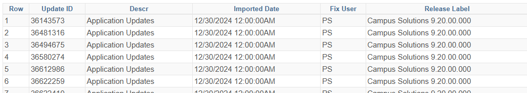 SELECT A.UPDATE_ID, A.DESCR, TO_CHAR(CAST((A.DTTM_IMPORTED) AS TIMESTAMP),'YYYY-MM-DD-HH24.MI.SS.FF'), A.FIXOPRID, A.RELEASELABEL