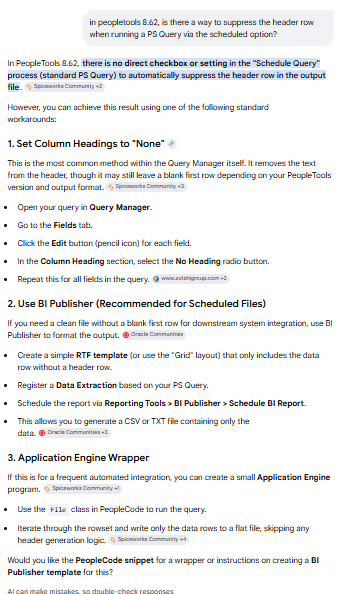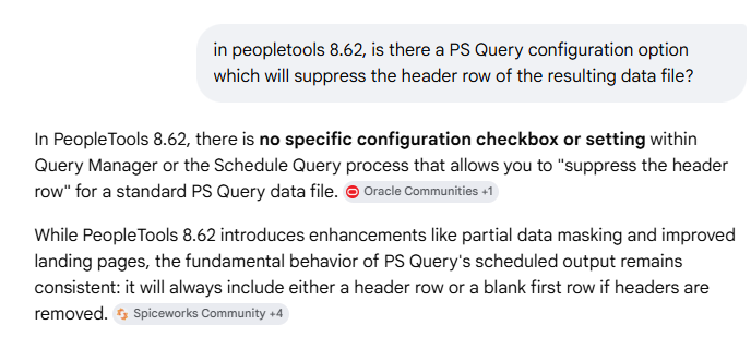 I recall reading that PT 8.62 would add the ability for CSV query output to include a header row. However, I haven't been able to find any documentation in PeopleBooks or anyone else describing this.